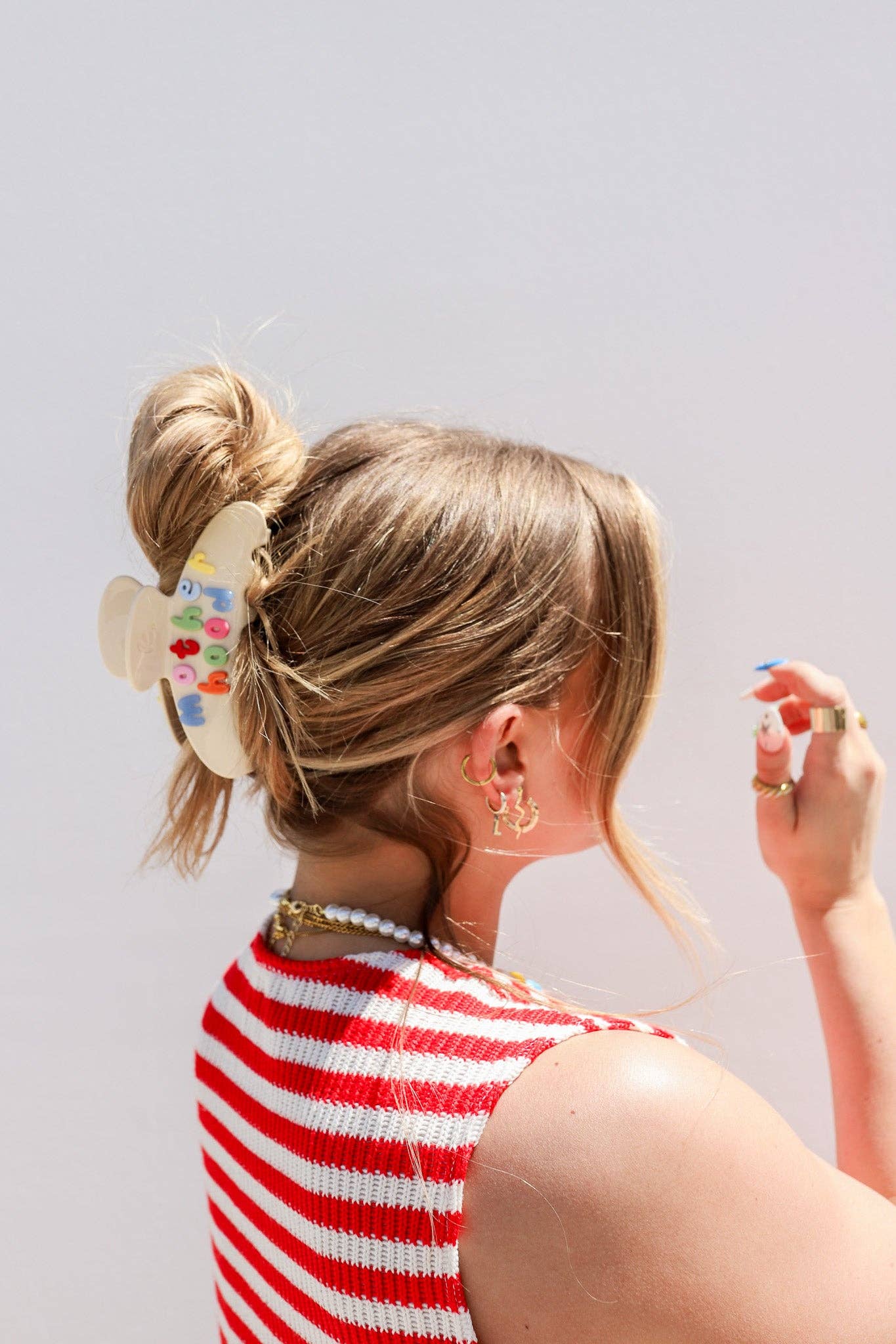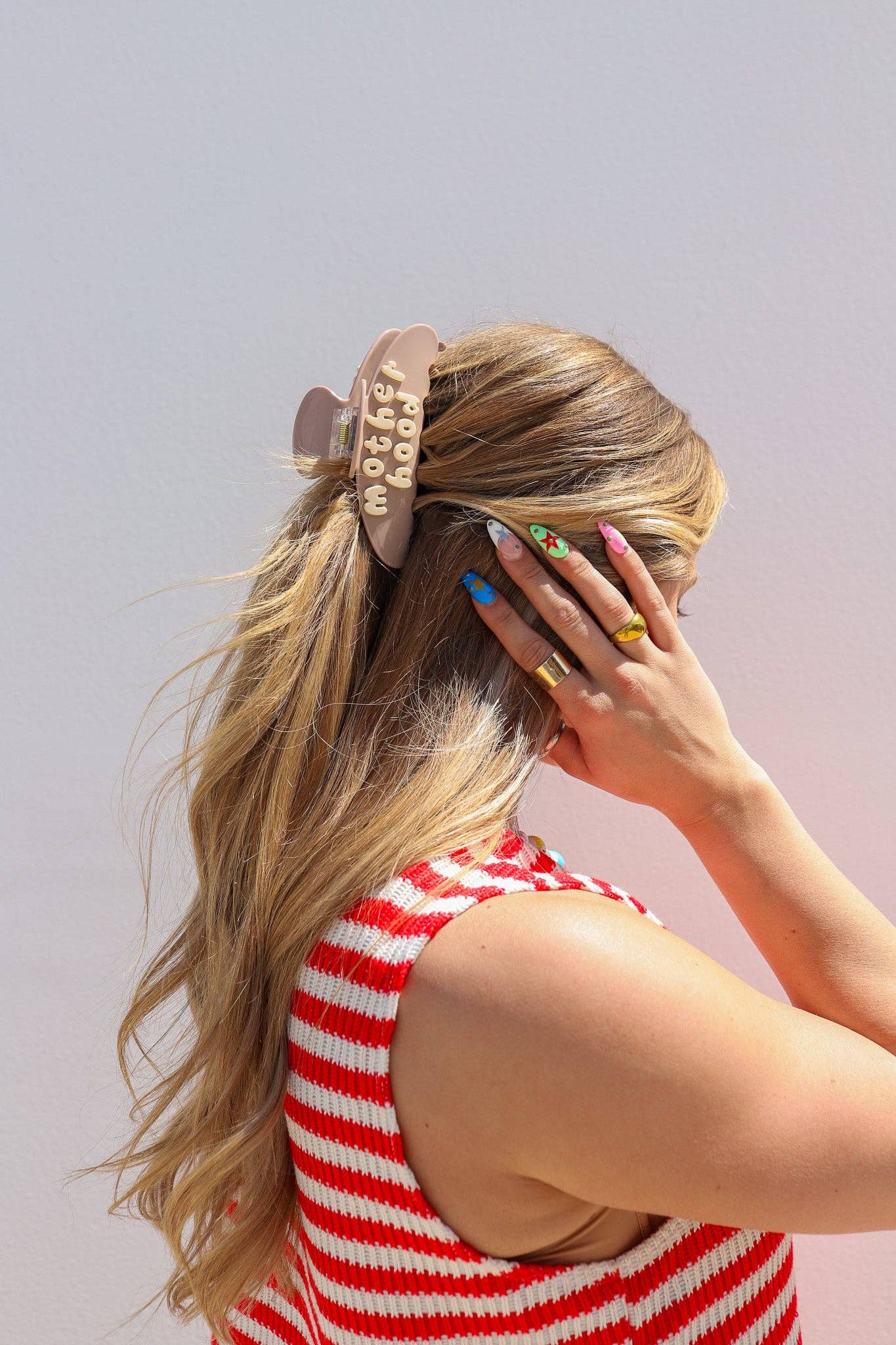 Our Motherhood claw is EVERYTHING! This claw is functional with a strong spring and long enough to hold all your hair or wear as a half up half down. But what makes this claw so special is the 3D Motherhood pieces on each side. This claw comes in two different color options, Brown/Cream and Cream/Colorful. You won't want to miss this, we have limited stock!