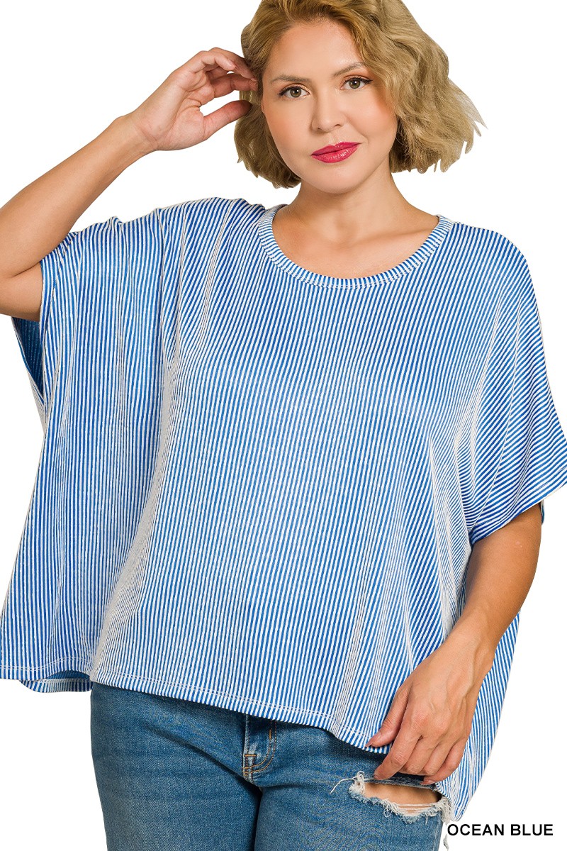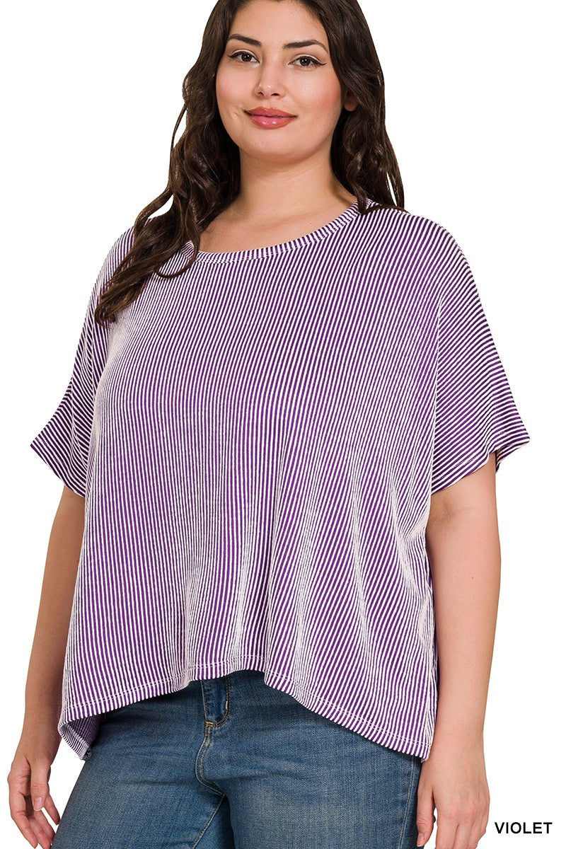 Plus Ribbed Striped Oversized Short Sleeve Top (3 Colors)