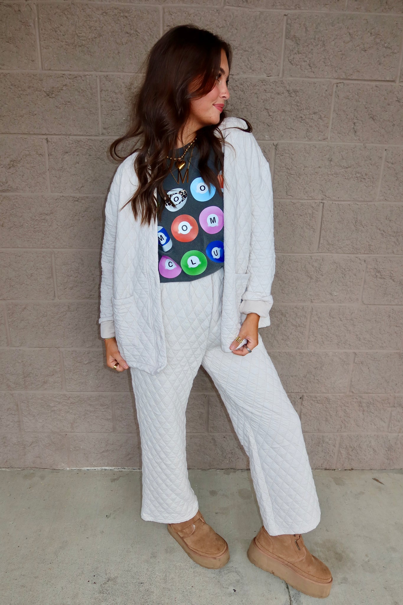 Have the comfort of your grandmas quilt while looking like you're ready to walk the runway. This quilted set is fabulous for many reasons, but being able to style it for literally any occasion has to be our favorite one. It's a true to size fit and available in many great colors!