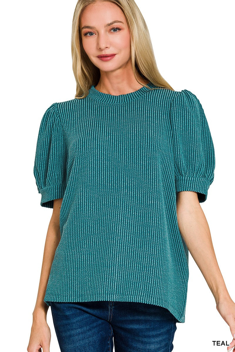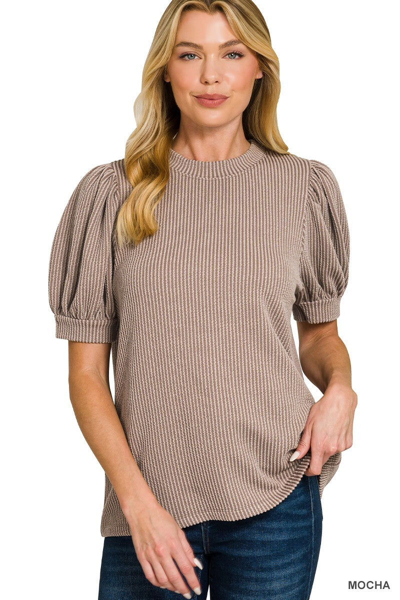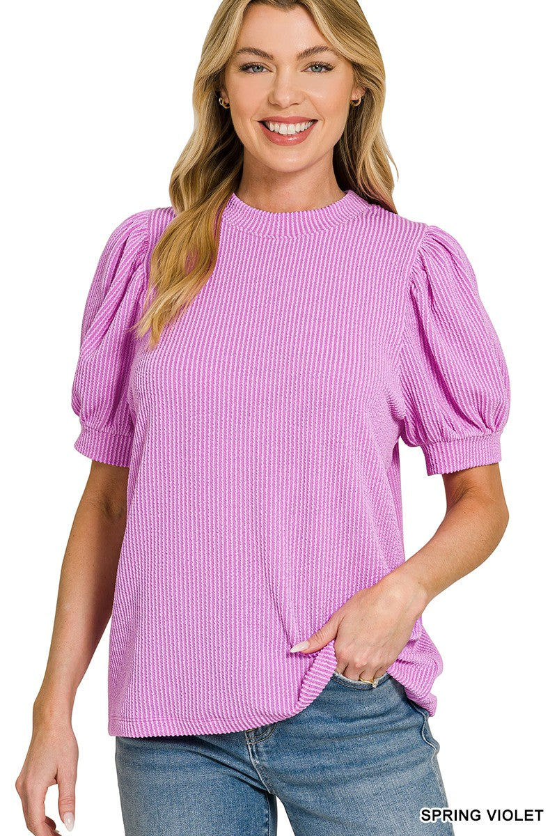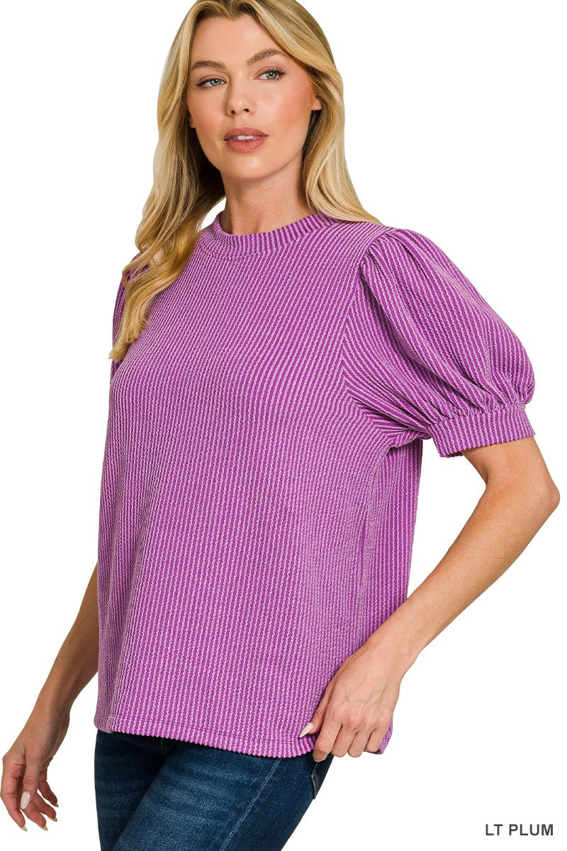Raised Rib Puff Sleeve Top (6 Colors)