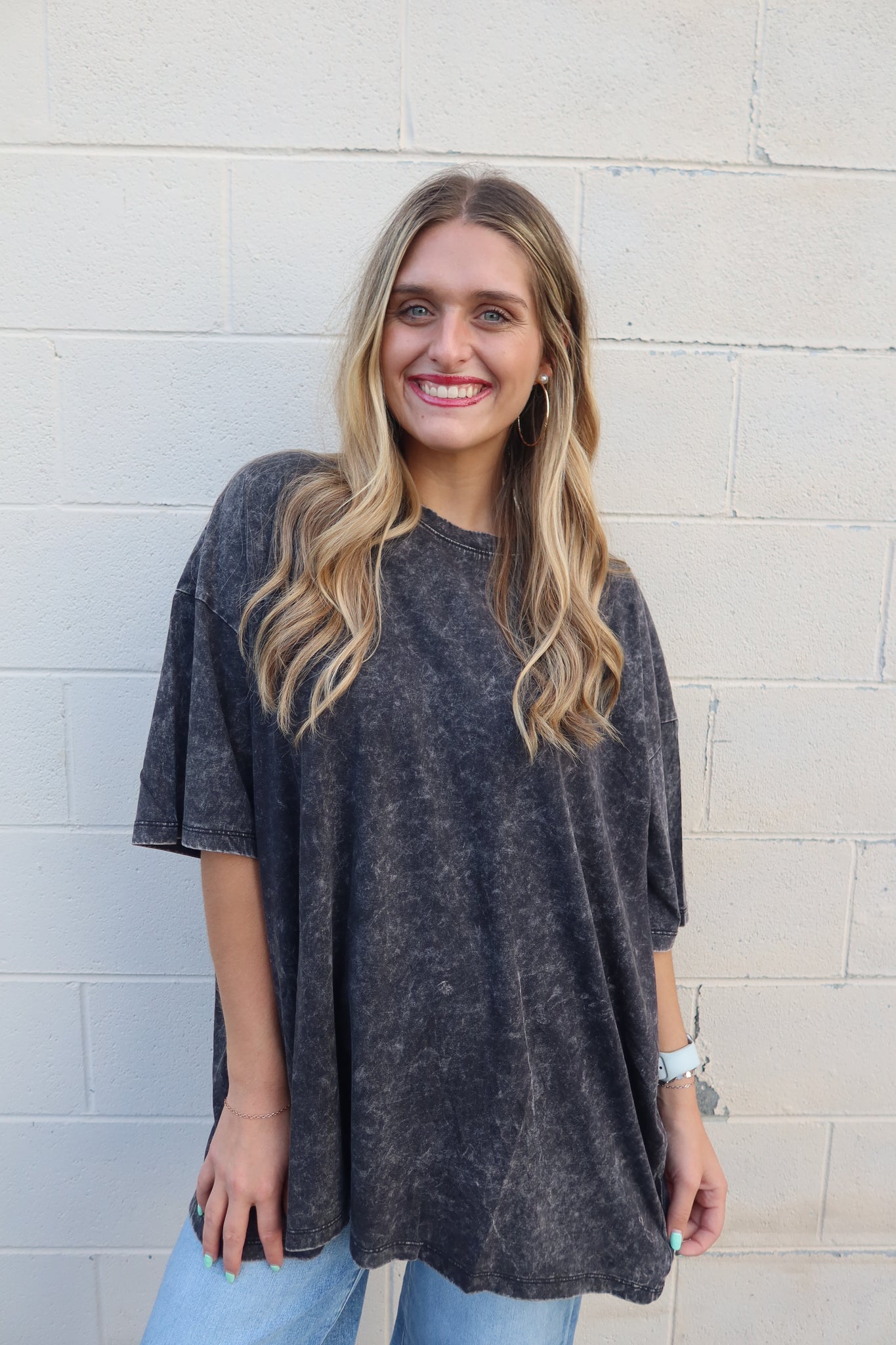 We love t-shirts and we love acid washed things. This top checks both boxes! It's a very oversized fit so it could be worn many ways for many different occasions.
